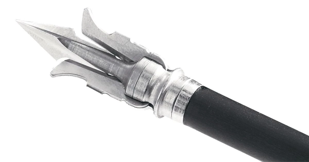 Features Grim Reaper’s original “No O-Ring” design and shock absorbing blade spring to assure superior penetration with no deflection from any angle. Shaft and tip are engineered to extend far enough to provide start-up penetration just before blades arrive for true trajectory after impact and maximum follow-through damage.