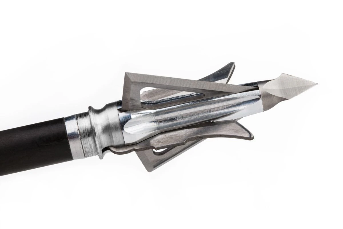 The pinpoint accuracy of a true-flying two blade head teamed up with the awesome destruction of a 4-blade. The new Hybrid from Grim Reaper Broadheads starts cutting at their legendary V-notch chisel tip, hammers ahead with two super-strong fixed Hades blades and finishes up with a pair of world-class mechanical razors!