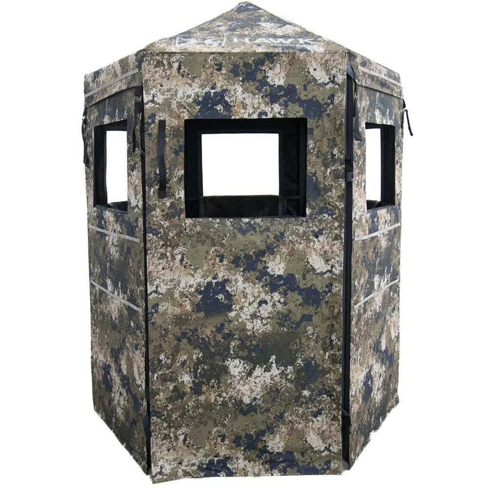 Say “goodbye” to your hub-style blind and move into something a little more permanent. The Hawk® Scout Hunting Blind features a rock-solid construction and innovative Down & OutTM Panels that give it the portability of a pop-up blind and the stability of a permanent blind. There’s no hubs to pop out or pole to break, plus it takes just minutes to set up. But the best part? It’s durable enough to leave out all year so whitetails and other wildlife won’t notice a difference come hunting time.