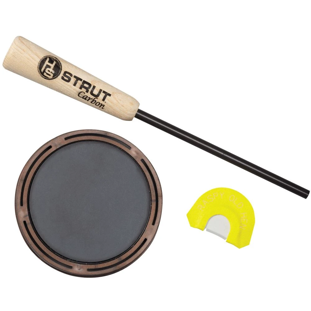 Lightweight and compact call produces soft, seductive sounds. With carbon striker. Includes Premium Flexâ„¢ Raspy Old Hen diaphragm call.
