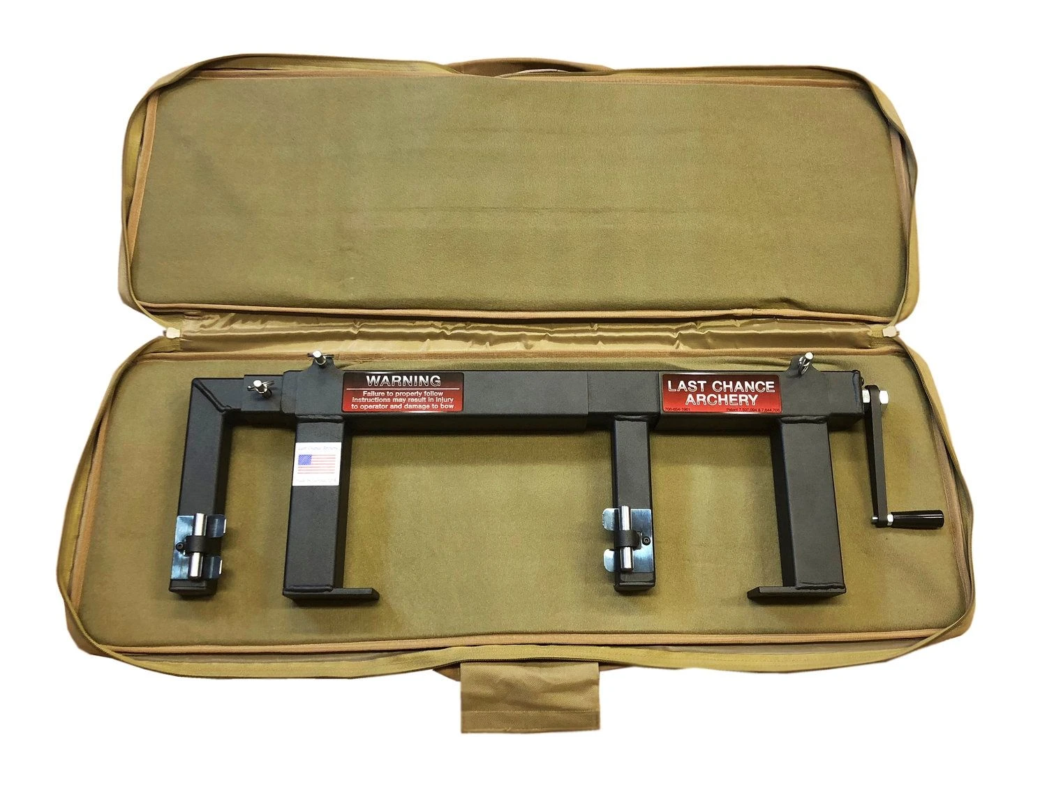 With the Pack-N-GO, you can quickly take your press and turn it into a huge space saver on your next trip. Using the Pack-N-GO, you can easily travel with a bow press under or behind the seat of your car. No need to move your shop press, have the Pack-N-GO ready for adjustments in the field. The Pack-N-GO includes a handy carrying case that your press fits inside perfectly. The case is also equipped with 5 pockets for your 5 bow press fingers. This case makes it super easy not only to save space but also to carry your press to different locations with little to no hassle.