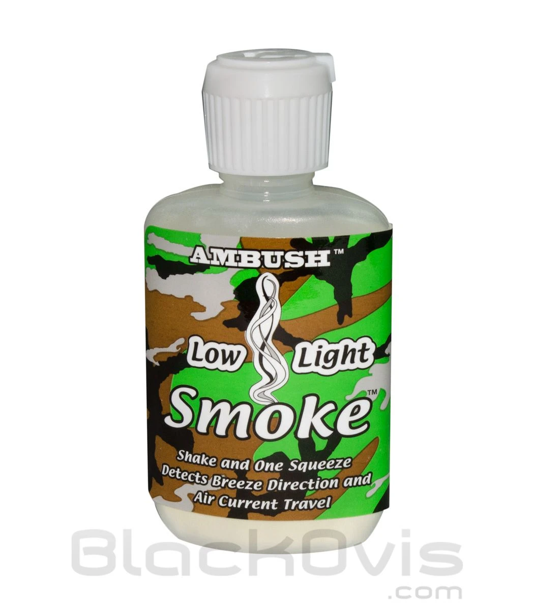 Moccasin Joe Smoke Low Light wind checker covers a full range of light and air movement conditions. They are Scent and Odor Free and can be used to detect the slightest of air movement. The Low Light is perfect for those dusk or early morning situation where it is hard to see. Just shake the bottle to mix the powder and air, flip the spout, squeeze and watch the smoke. Great for hunting, fishing, golfing and other sports.
