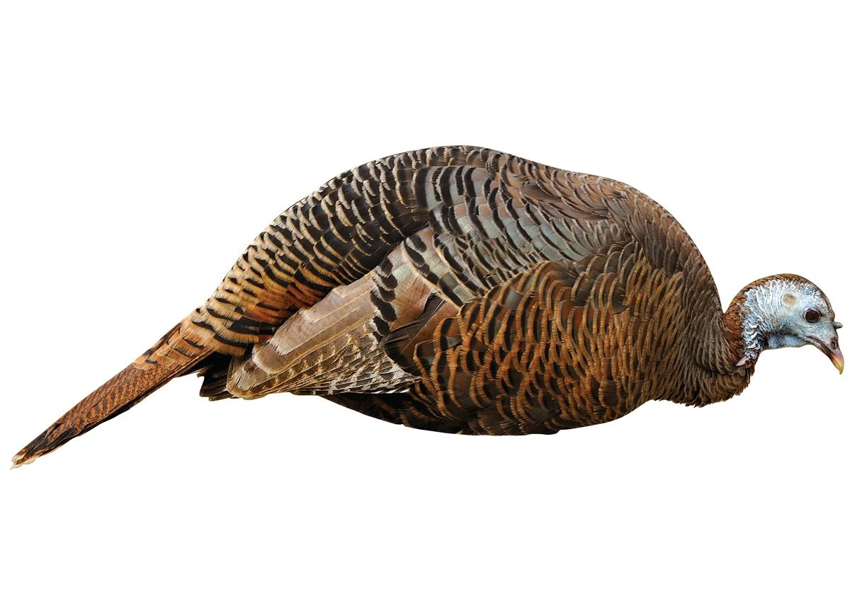 - HD realistic feeding pose of the turkey decoy calms call-shy toms.