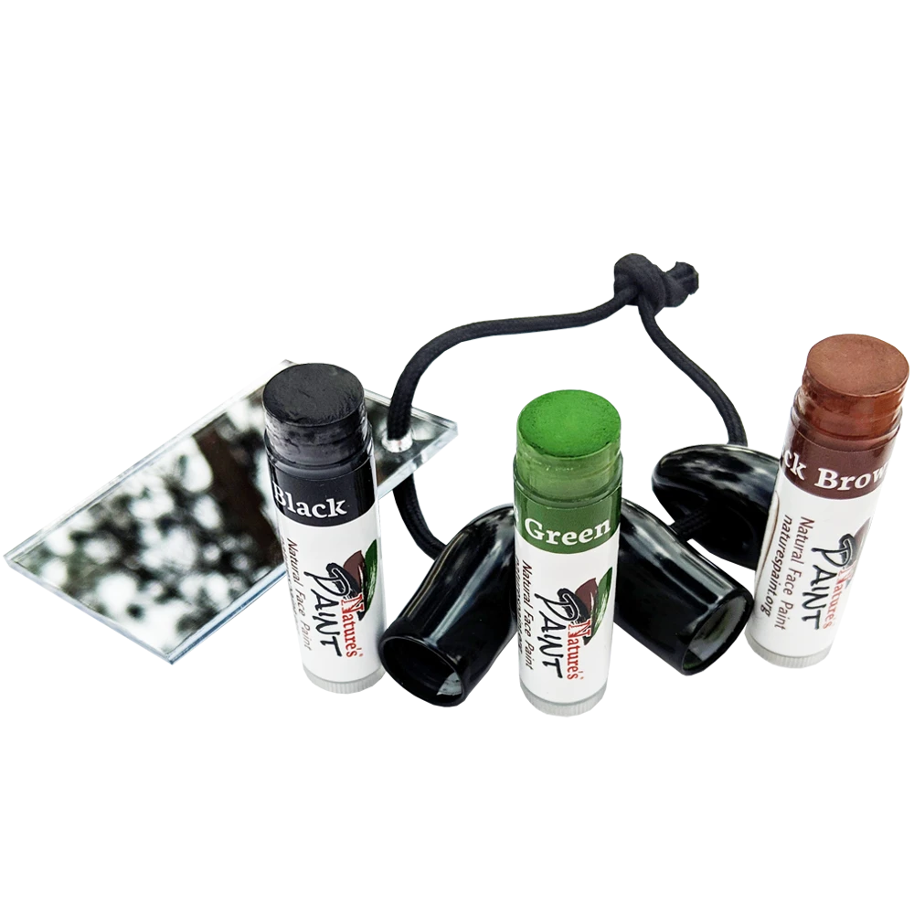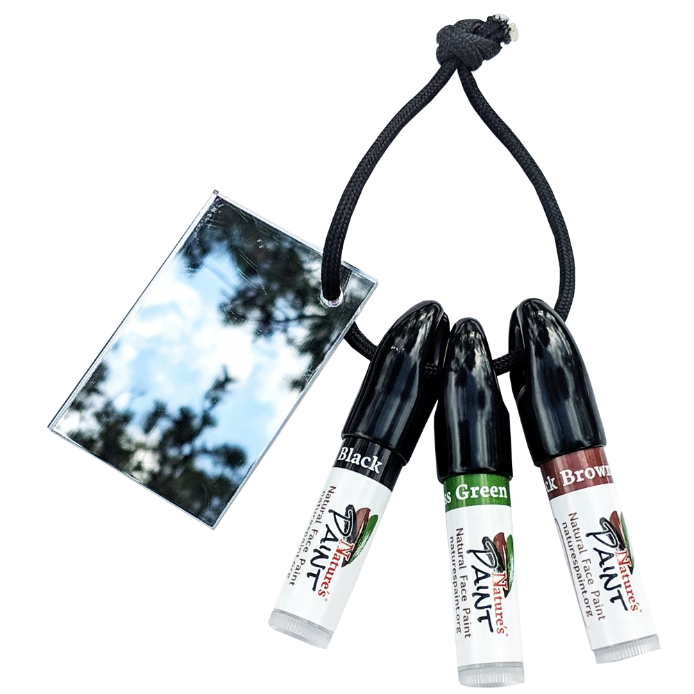 Finally, a paint formulated with 100% natural ingredients that will keep you concealed throughout your hunt and come off with the swipe of a towelette at the end of the day. Available in three essential colors every hunter should have. Mirror and lanyard included. Let Nature’s Paint be your go to, trustable face paint. With our easy on easy off application and all natural ingredients, your skin is left feeling clean and healthy at the end of a day’s hunt.​