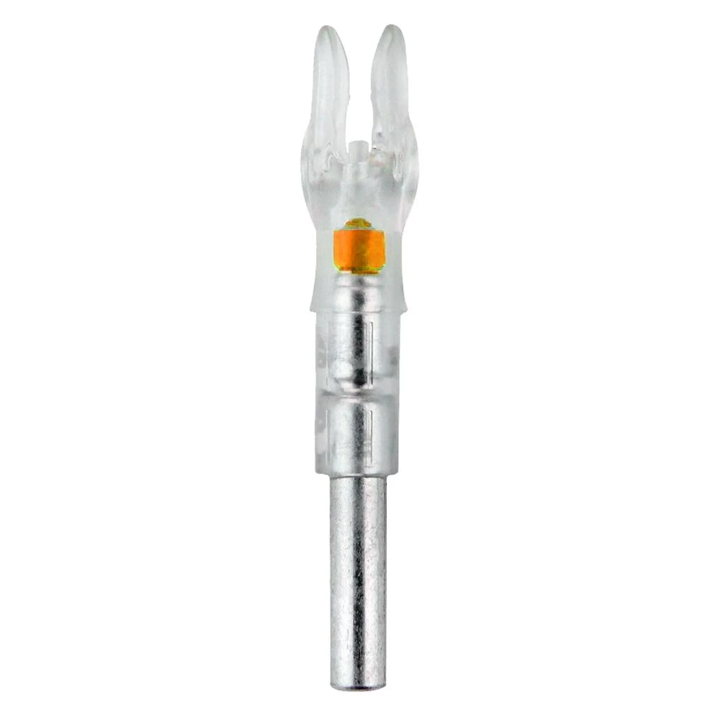 Exclusive patented linear switch design works every time, no wires of connections, simple bowstring activated push on switch, easily switches off when done, extended burn time of 20+ hours, water proof, use in any conditions, see your arrow impacts under any light and find that arrow on pass thru shots.