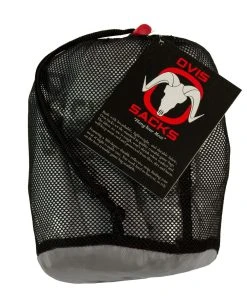 Ovis Sacks are lightweight reusable game bags that allow your hard earned wild game meat to properly cool off while keeping them free from flies, debris and dirt as you transport it from the field to the freezer. Each of the Ovis Sacks game bag kits comes with necessary supplies like latex gloves, flagging tape and other necessities to make field dressing and quartering game a breeze. The XL size of reusable game bags is ideal for Caribou, Elk or a deboned Moose. The Large size is ideal for Deer, Sheep, Antelope and deboned Elk or Caribou. Wash and reuse these synthetic game bags for years to come. Grab this lightweight Black Ovis game bag kit and you’ll be set for years to come as you pursue big game anywhere in the world.