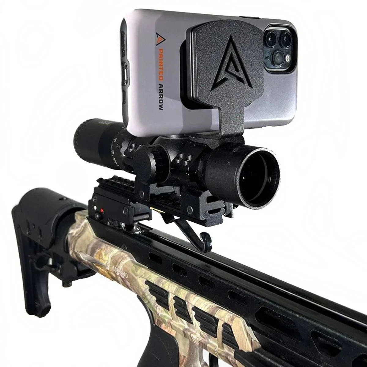 The Painted Arrow MAG-PRO X is the ultimate POV camera solution for crossbow hunters. This patent pending product allows crossbow hunters to quickly and easily secure their smartphones to their crossbow using high powered rare earth magnets. The MAG-PRO X mount was designed to fasten onto the tensioning nut of the front scope ring, included within the kit. By simply adhering the metal plate (included in the kit) to the back of your phone case, you are able to quickly and silently attach your phone to your crossbow to film your shots. Filming your hunt has never been easier!