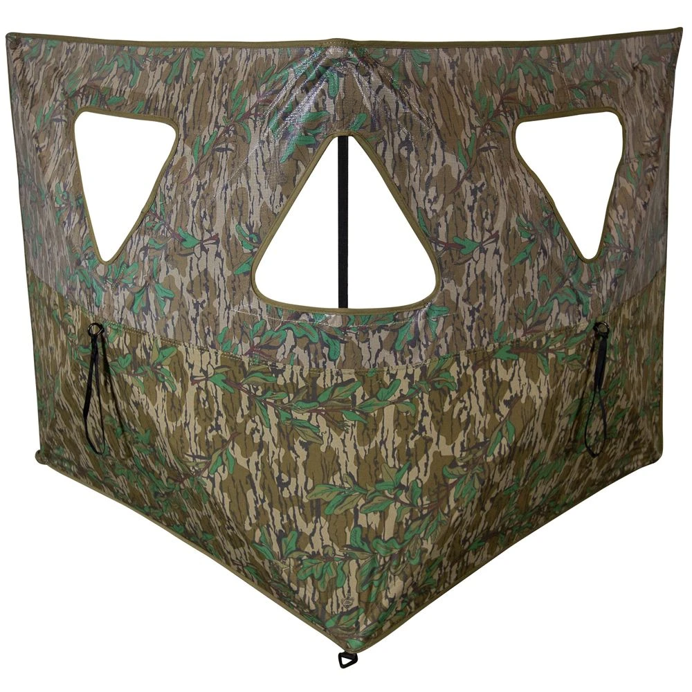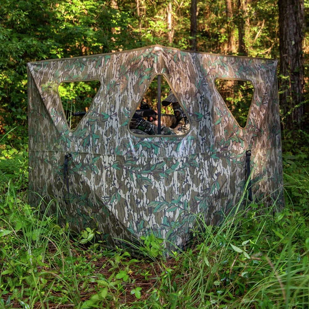 Introducing the Primos Double Bull SurroundView Stakeout Blind in Mossy Oak Greenleaf Camo. The Stakeout is constructed with two exclusive one-way see through walls, so you can see every movement in front of you without moving to peek around or above the blind to steal a glance. Three shooting windows are perfectly positioned for multiple shooting lane options. Its two-hub design keeps both walls sturdy yet easy to pop up and tear down. It’s the Blind Without A Blind Spot built for super light and ultra-portable concealment!