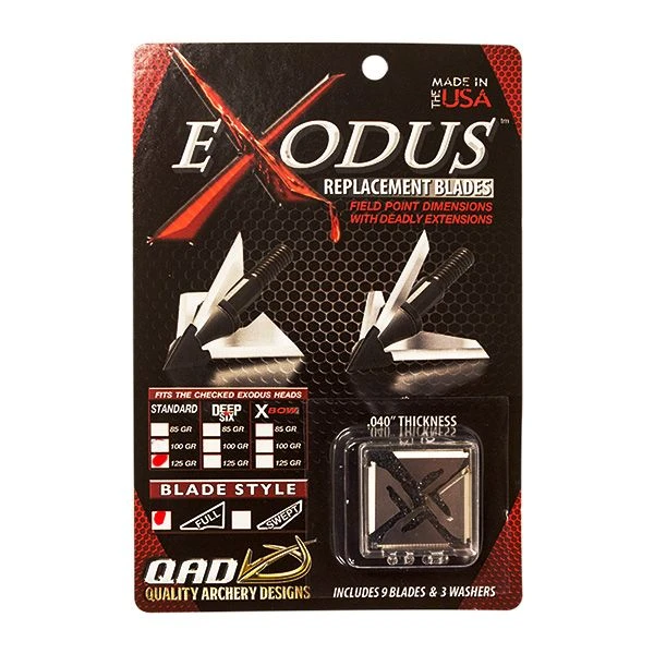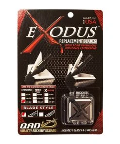 Exodus Replacement Blades are 100% designed and manufactured in the good ol’ USA. They fit on all Exodus ferrules so whether you are shooting the 100 or 125 grain broadheads for bow or crossbow, these blades will fit on all of them. All you need to decide is whether you want the Swept or Full Blades.