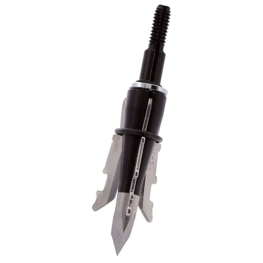 As with all WASP SST broadheads, the Jak-Hammer features a pre-aligned, Stainless Smart Tip (SST). The edges of the trocar, Smart Tip are factory- aligned with the rise of the three stainless steel blades creating a straight cutting path that opens a gaping wound channel, ensuring maximum penetration. The three surgically sharp stainless steel blades of this mechanical broadhead fold forward in flight and are retained by an O-ring. Blades deploy on impact and fold back to a cutting diameter of 1-3/4 inches.