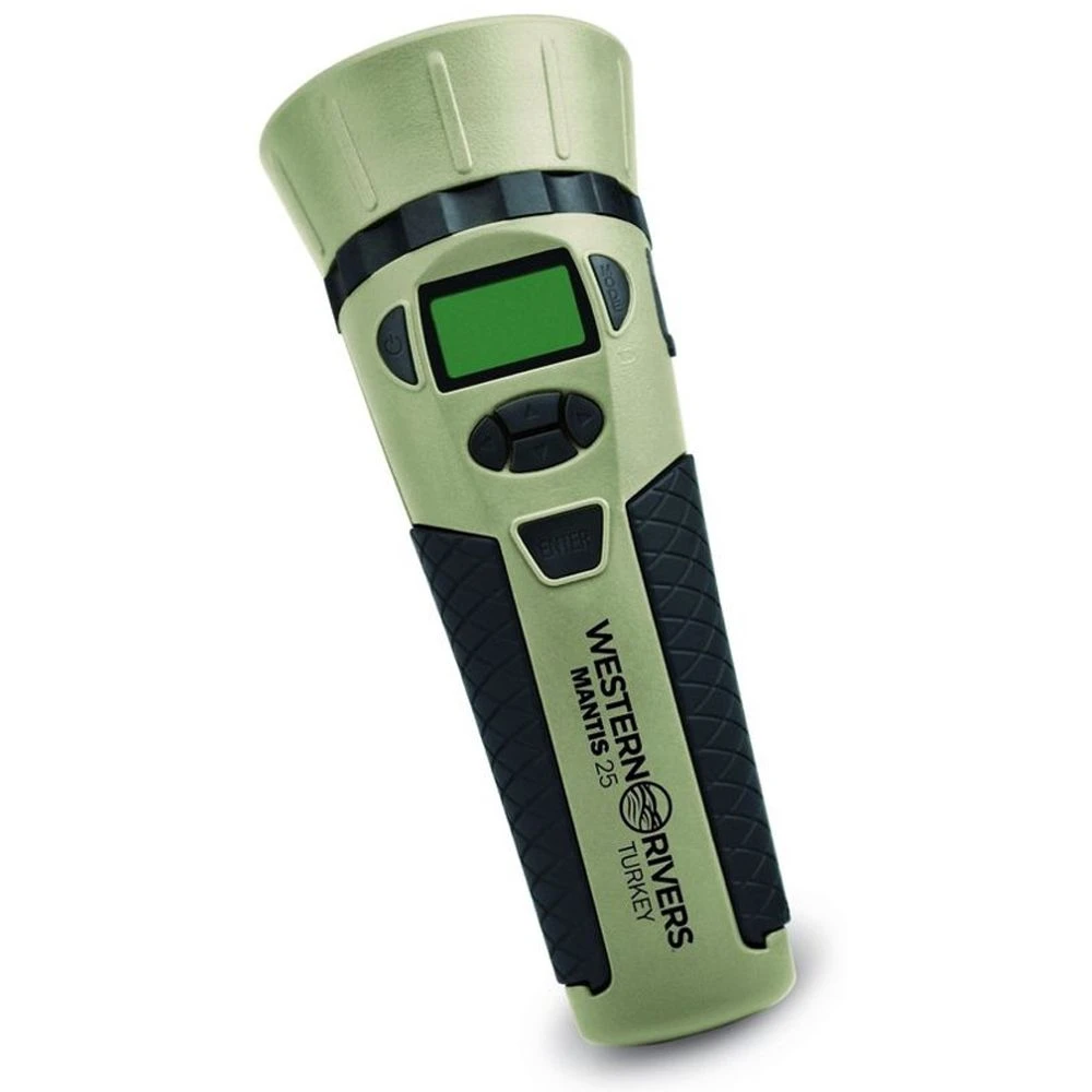 Drive lovesick toms wild! When that cautious tom won’t come strutting in, reach for this easy-to-use Western Rivers Mantis 25 Electronic Turkey Call. Handheld unit comes pre-loaded with 25 calls, all recorded by Paul “The Maestro” Butski. Crystal-clear calls sound so realistic that turkeys just can’t resist.